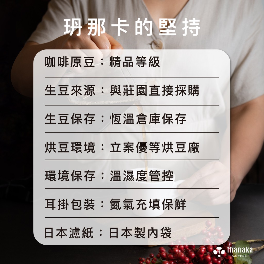 風味描述:白花、蜂蜜、紅糖、柑橘,玬那卡以黃金比例配方,用最理想的烘焙程度,將優點發揮極致,成為酸甜感平衡、風味圓潤、飽滿厚實的黃金咖啡。