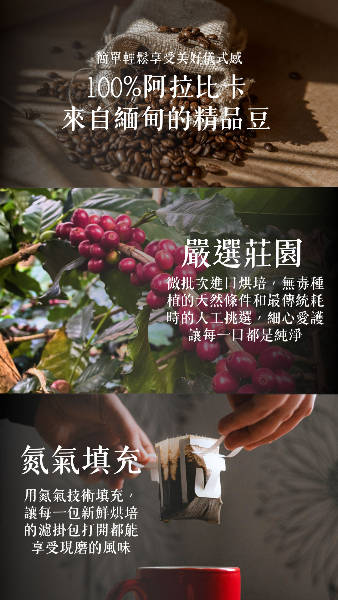 採用緬甸100%阿拉比卡精品豆|充氮保鮮讓每包打開都像現磨